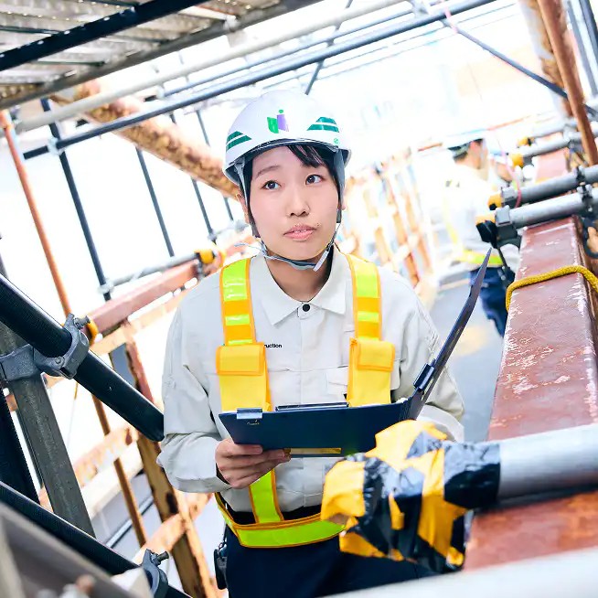 具体的な業務は測量や写真管理、現場を安全に管理するための書類のチェックなどをしています。工法などの知識についてはもちろん、より安全に、効率よく現場を管理するにはどうしたら良いかなど、学ぶことの多い毎日です。